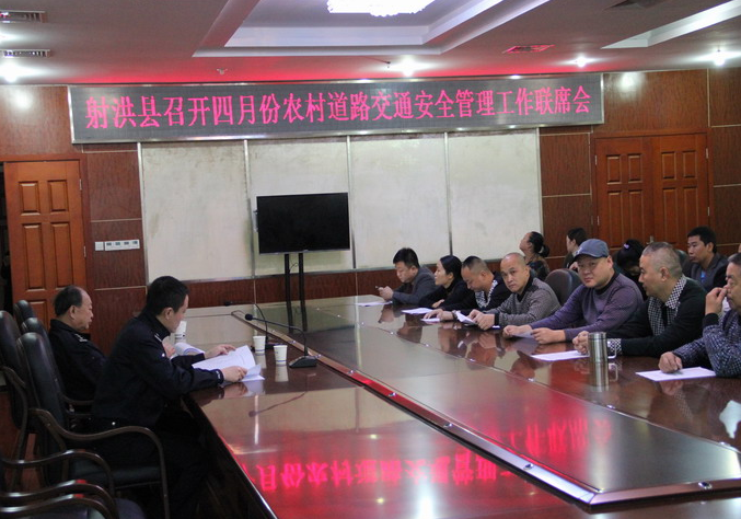 4月24日,射洪县组织县安委会成员单位主要负责人、部分农村交警中队长等相关人员,在县车管所三楼会议室召开四月份农村道路交通安全管理工作联席会。