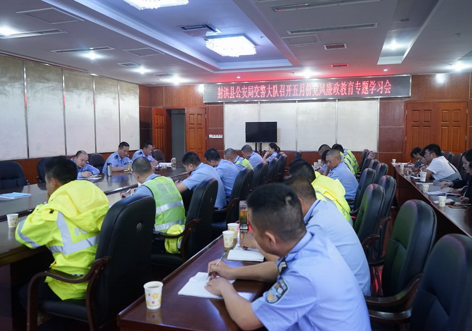 5月5日,射洪公安交警大队在车管所三楼会议室召开五月份党风廉政教育专题学习会,大队领导、中层干部及民辅警参加了会议,会议由副大队长范勇主持。