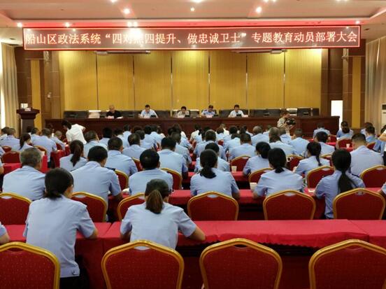 此次专题教育动员部署大会指出,政法系统开展以对照“对党忠诚”要求、提升政治定力,对照“服务人民”要求、提升服务效能,对照“执法公正”要求、提升执法司法公信力,对照“纪律严明”要求、提升抵腐定力为主要内容的“四对照四提升、做忠诚卫士”专题教育。是学习贯彻习近平总书记重要指示精神和中央、省委、市委、区委部署要求的重大举措,是推进“两学一做”学习教育常态化制度化的有效载体,是全面推进政法系统党的建设和政法队伍建设的迫切要求。