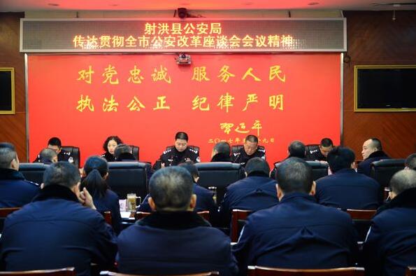 会议对2017年公安改革工作进行了简要总结,对2018年重点改革项目及特色亮点项目进行了认真谋划和安排部署。会上,陈良副县长对2018年公安改革工作提出了具体要求,一是深化认识,坚定公安改革信心。要深入学习各级公安改革会议、文件精神,坚持党对公安改革的绝对领导,积极响应,认真执行,不偏离、不懈怠,全力推进公安改革工作。二是明确目标,坚持公安改革方向。要进一步梳理2017年公安改革工作得失,继续深化未完成项目,推进欠成熟项目,助力公安工作。要进一步明确2018年各项重点工作,提前谋划、提前部署,下好先手棋,打好主动战。三是强化推进,用好公安改革方法。要坚持问题导向,立足本职,大胆创新,对已推项目进行完善,对未推项目提前准备。要进一步制定时间表、路线图,在项目推进上下功夫,促进改革项目落实落地。要坚持示范引领,以点带面,全面推进各项改革项目,促进公安机关跨越发展。四是强化督察,提升公安改革动力。改革办要切实发挥督查督办职能,加强对公安改革项目的督导检查工作,促进改革工作全面推进。县局纪委督察部门要加强对重点改革项目的督察工作,对推进不力、严重滞后的相关部门要及时采取必要措施强力推进。五是注重推广,彰显公安改革特色。要强化前阶段改革工作的延续性,确保改革项目更加成熟,同时,要将已成熟项目在全局范围进行推广,提升公安机关整体战斗力。要加强改革成果应用,着力打造射洪公安亮点特色项目。