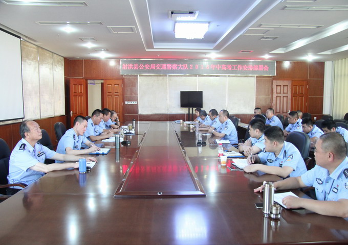 一年一度的高、中考即将来临,为维护考点周边道路交通秩序,确保考试期间车辆、考生的交通安全,保证高中考工作的顺利进行,6月1日下午,射洪县交警大队在车管所三楼会议室召开了高中考安保工作安排部署会,大队领导、部门负责人和协管员组长参加了会议,会议由教导员黄维军主持。