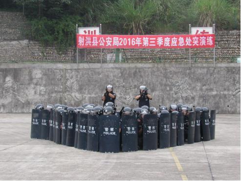 射洪公安 组织开展2016年第三季度应急处突防暴演练