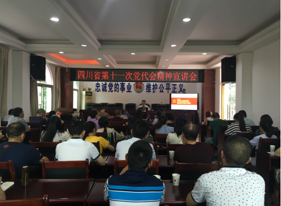 宣讲会首先向与会人员介绍了省十一次党代会概况,向大家讲明了中国共产党四川省第十一次代表大会于2017年5月24日至27日在成都胜利召开。大会审议通过了十届省委工作报告和省纪委工作报告,选举产生了四川出席党的十九大代表和新一届省委、省纪委。会上,王东明同志代表十届省委作了题为《紧密团结在以习近平同志为核心的党中央周围,建设美丽繁荣和谐四川、推动治蜀兴川再上新台阶》的工作报告。