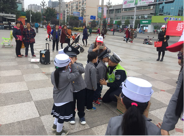 为增强幼儿园小朋友的交通安全意识,提高他们的安全出行意识、自我防护能力,预防和减少涉校交通事故。11月17日上午,大英大队组织幼儿园的小朋友在政府广场上了一堂“小交警”文明交通安全课。