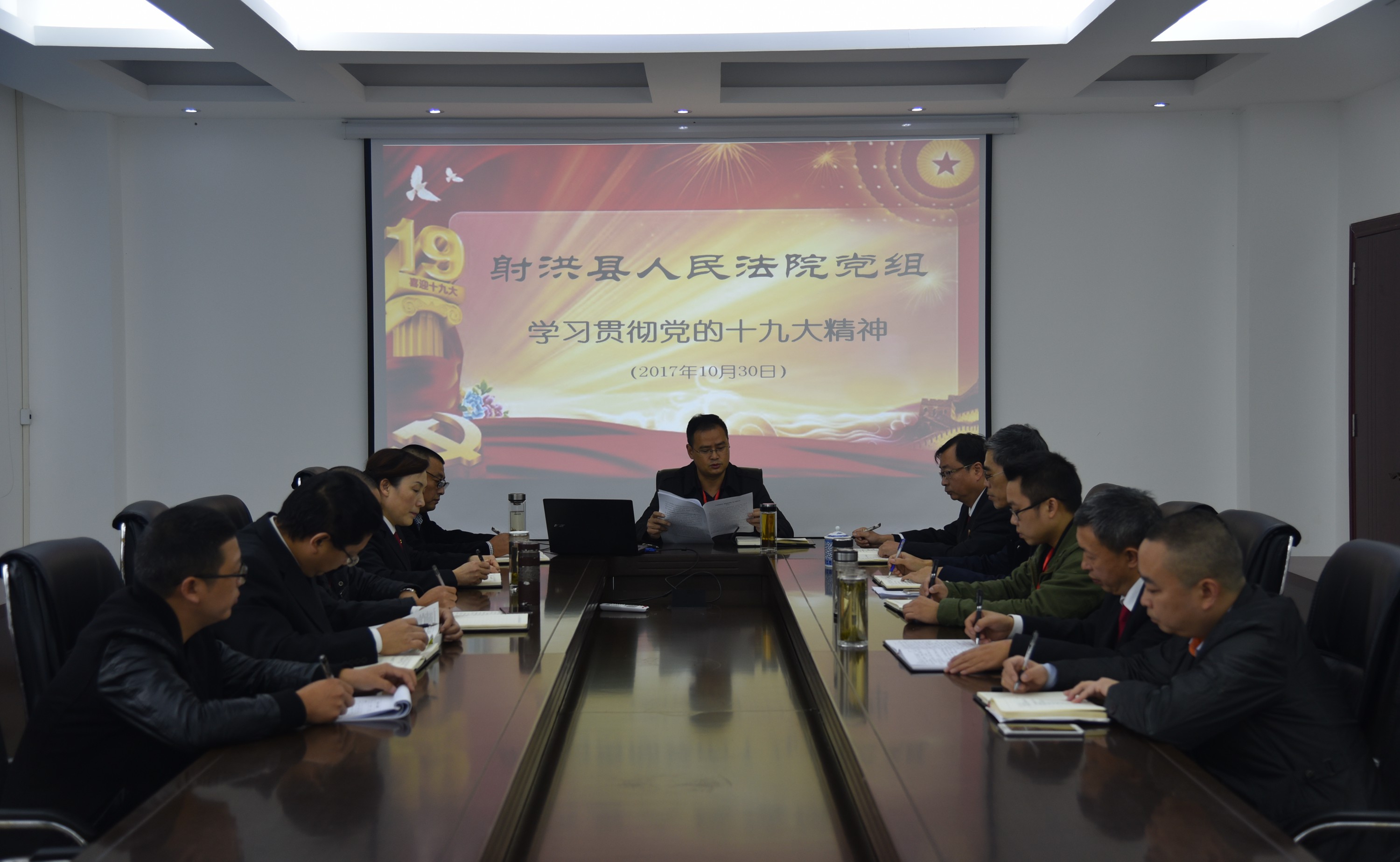 10月30日,射洪县法院召开党组扩大会议传达学习党的十九大会议精神。会议由党组书记、院长杨清明主持,全体党组成员参加会议,审委会专职委员、办公室主任等列席会议。